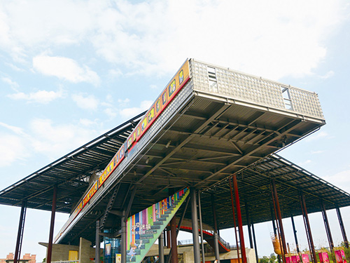 羅東文化工場為了不擋到四周互望的視線,在一座淨高18公尺的大棚架下,認真的將天空藝廊吊起來,文化市集趴下去,使中段的空間空了出來。這種把一切留...